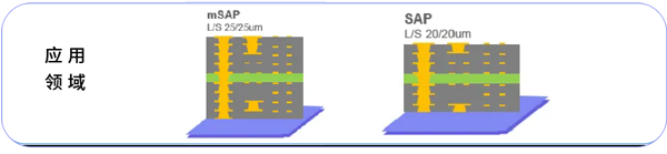 FD-800系列是為BGA、CSP等半導體封裝基板開發的LDI干膜,具有高感度、高解析、底部殘足小、電鍍污染性好、干膜側壁形狀良好等各種特點,適用于微細線路蝕刻和半加成法(mSAP)工藝。
